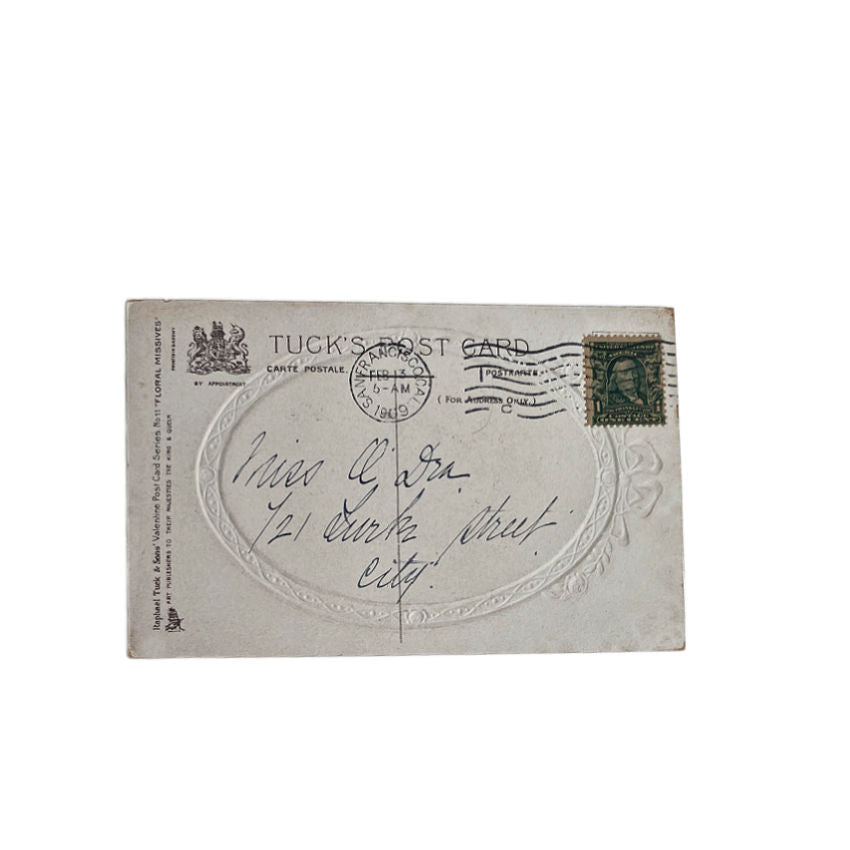 A tender keepsake from another era, this Antique Raphael Tuck “Floral Missives” Valentine Postcard captures the romance and sentiment of Edwardian love. The delicate chromolithograph detail and gilt accents exemplify Tuck’s artistry and the refinement of the golden age of postcards. Adorned with an elegant portrait of a young lady surrounded by softly embossed blossoms and gilt accents, it tells a story of beauty, devotion, and grace.